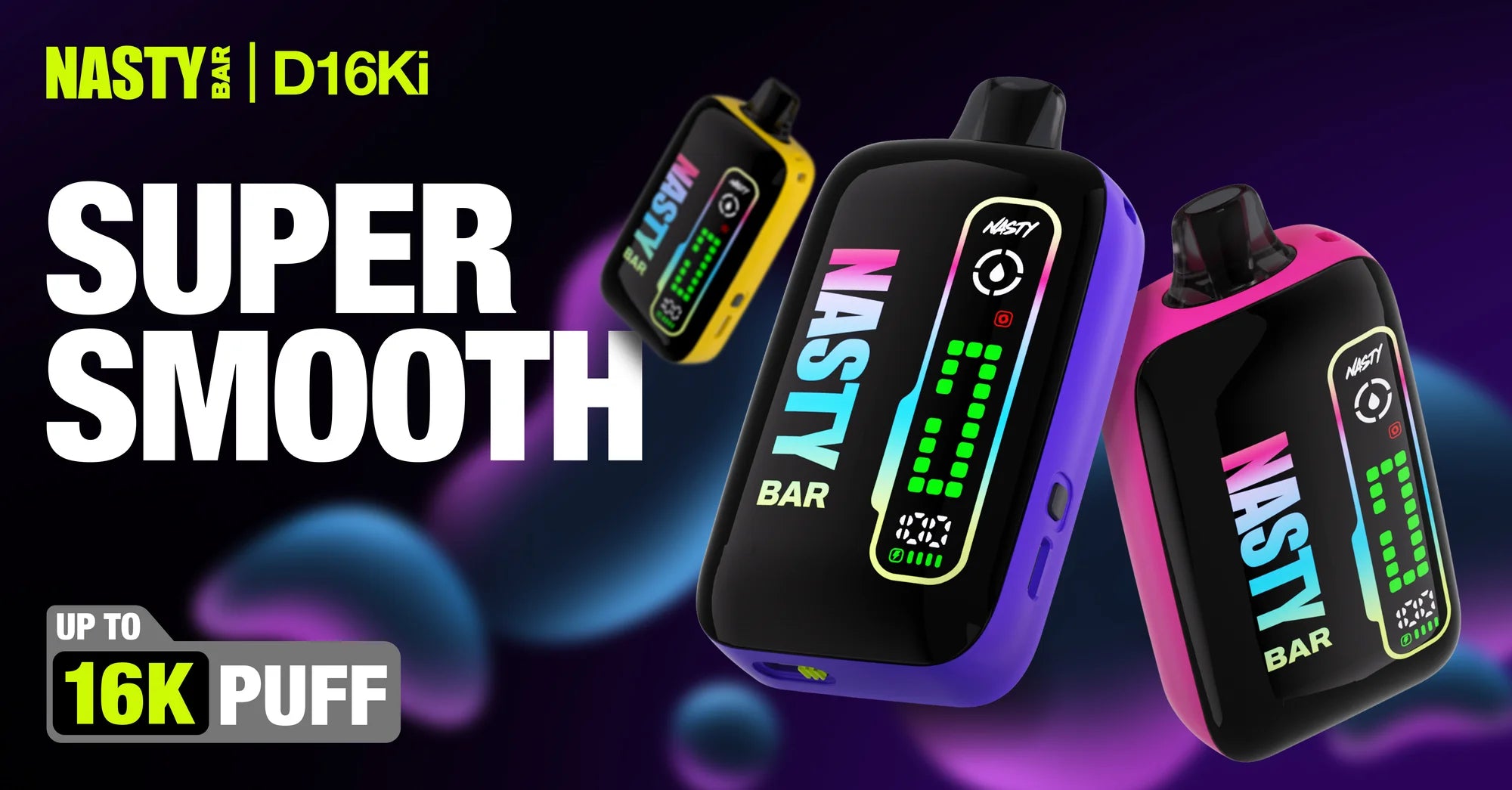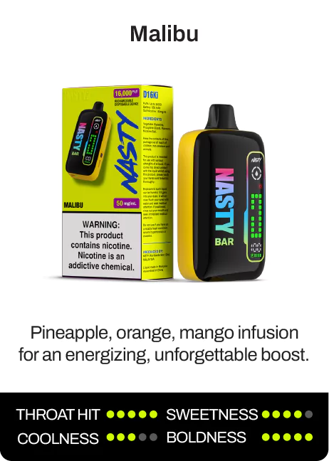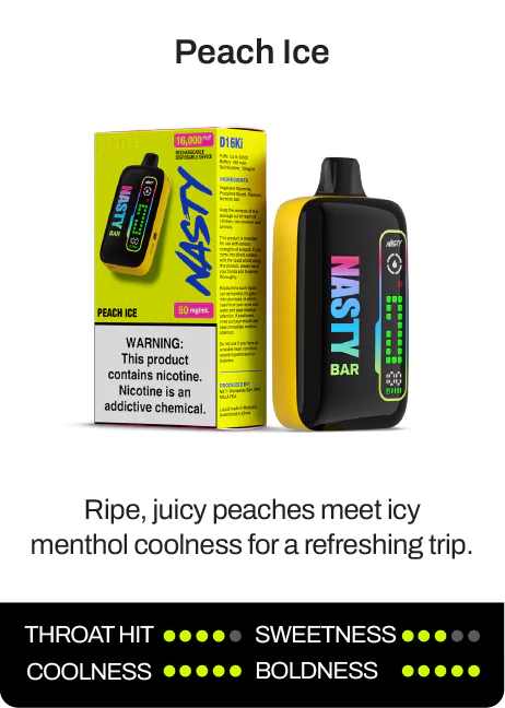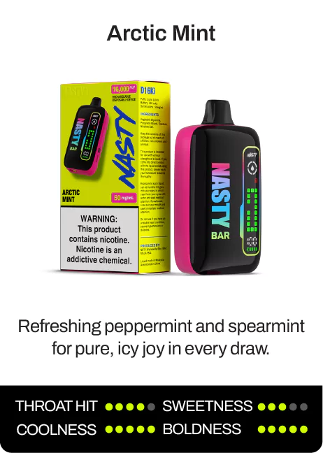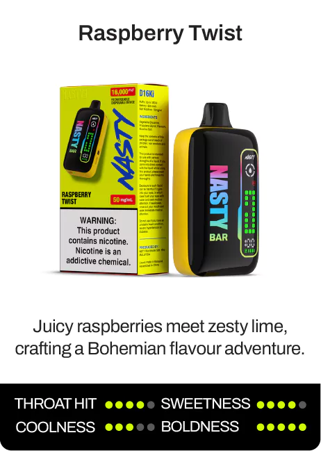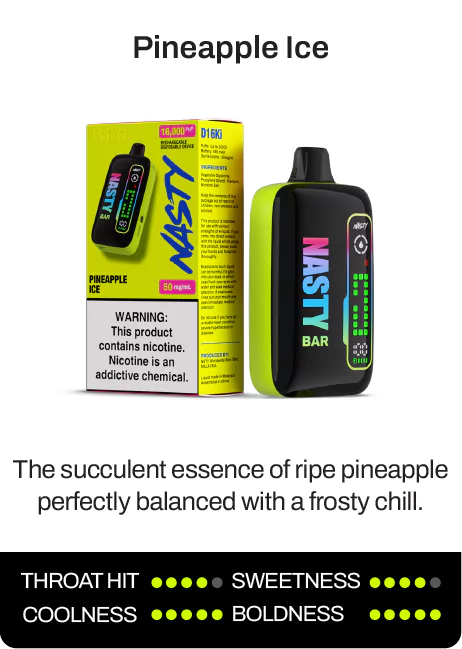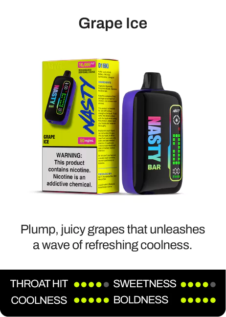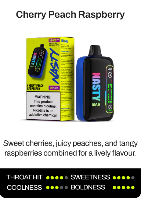 The NASTY BAR D16Ki is a rechargeable Nicotine Salt Disposable Device that delivers up to 16,000 puffs of pure flavour satisfaction.
