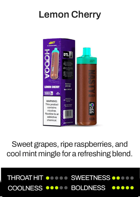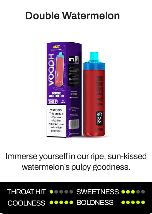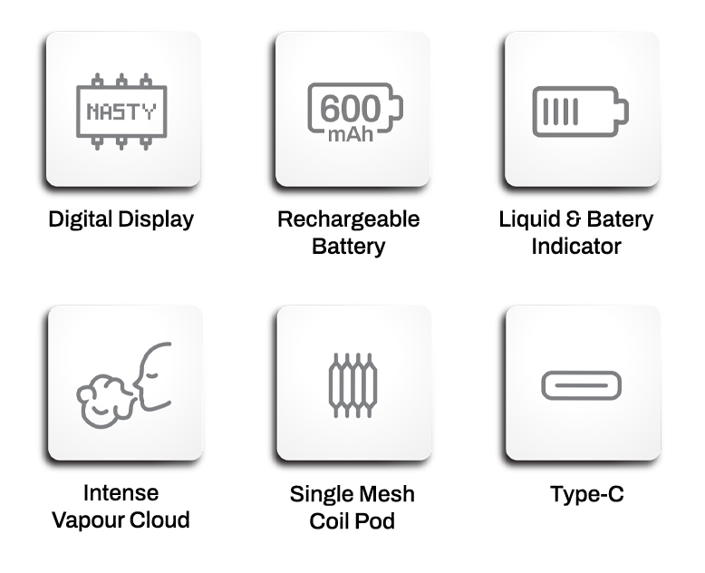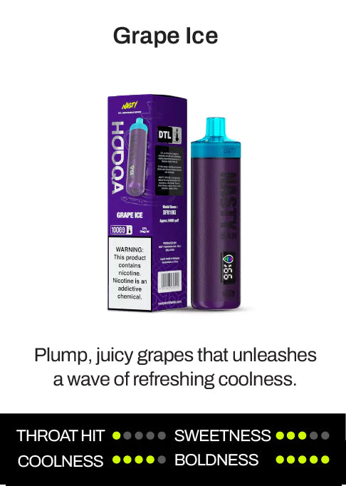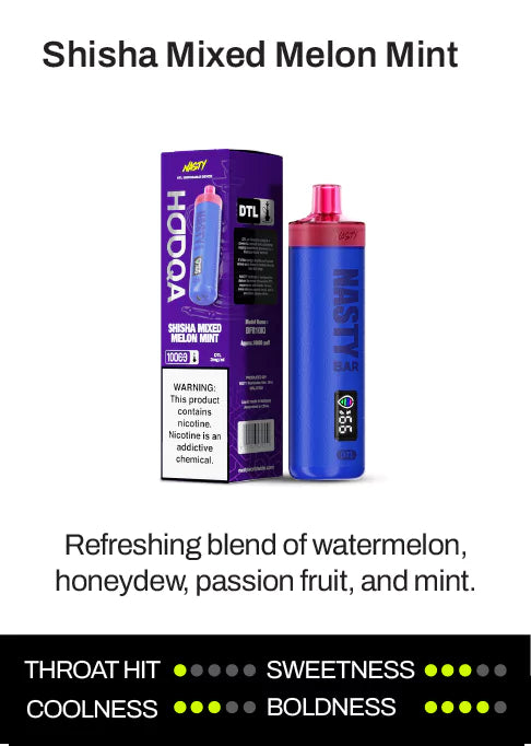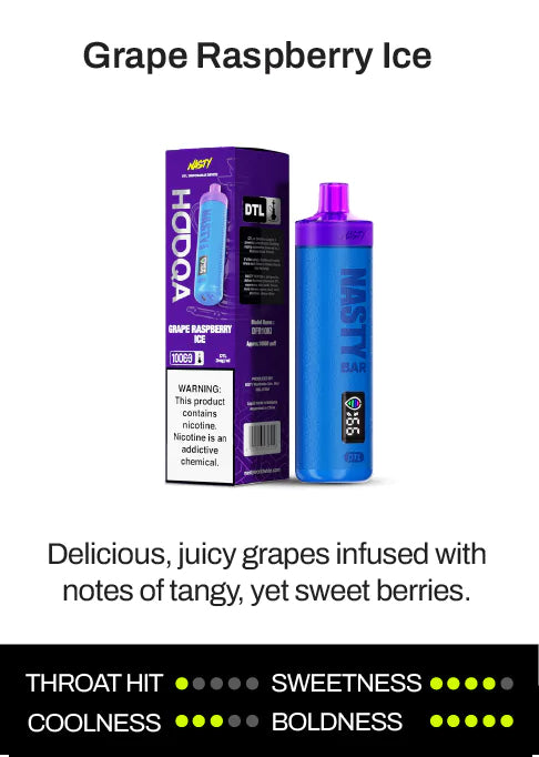The NASTY BAR HOOQA DFR10Ki is rechargeable Disposable Device powered by our new Freebase Nicotine formula which allows for a smoother and bolder DTL experience, very similar to using a hookah or shisha pipe where each draw is taken direct-to-lung.