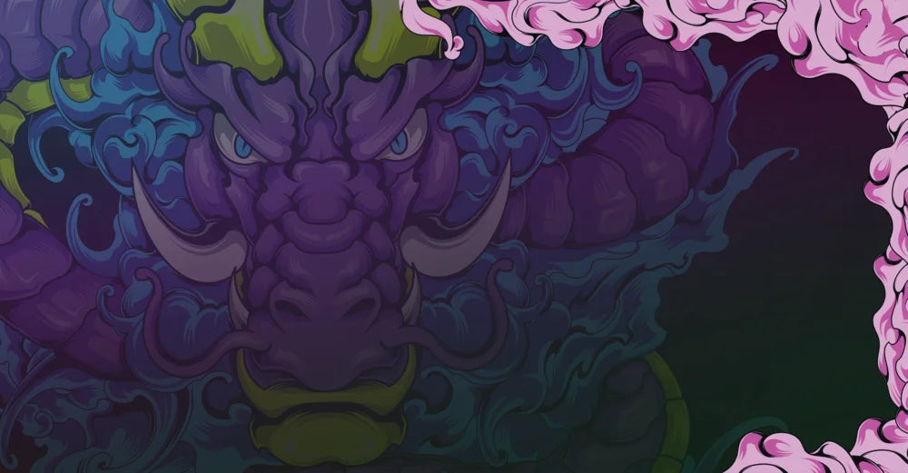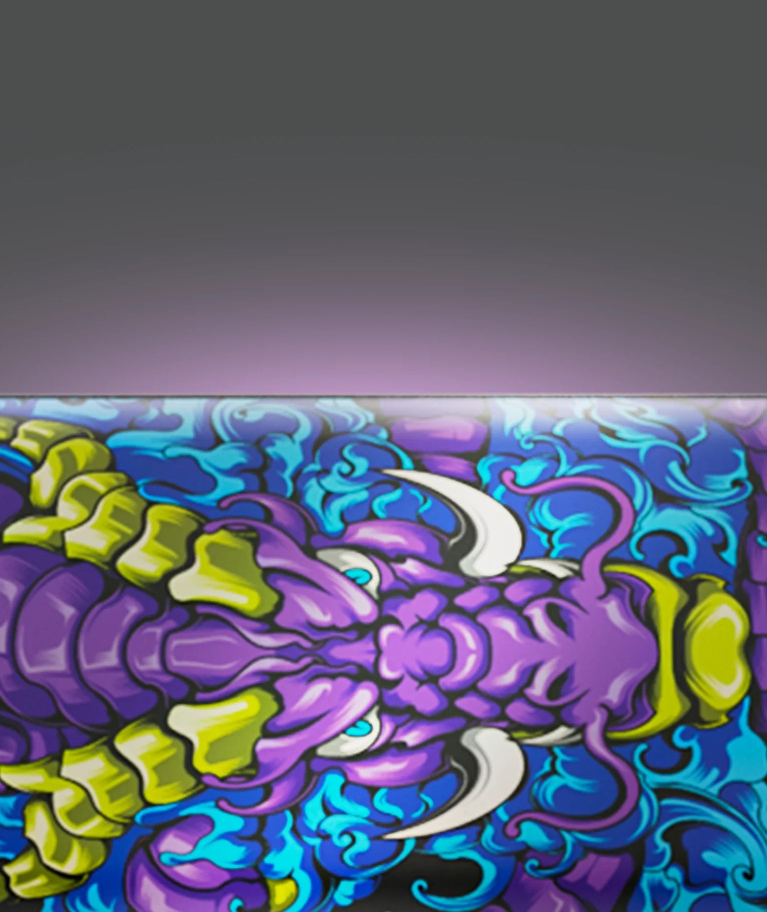 Matte-finish dragon front, each snarling to embody the essence of its flavour.