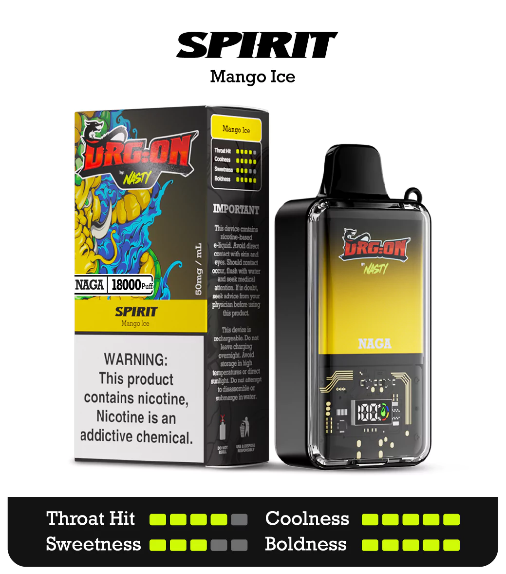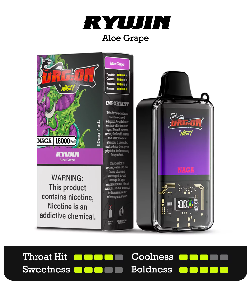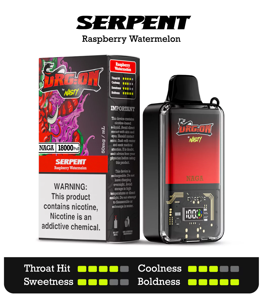 Experience the World’s Tastiest Flavours created by NASTY with the DRG:ON NAGA 18,000 puffs rechargeable disposable device.
