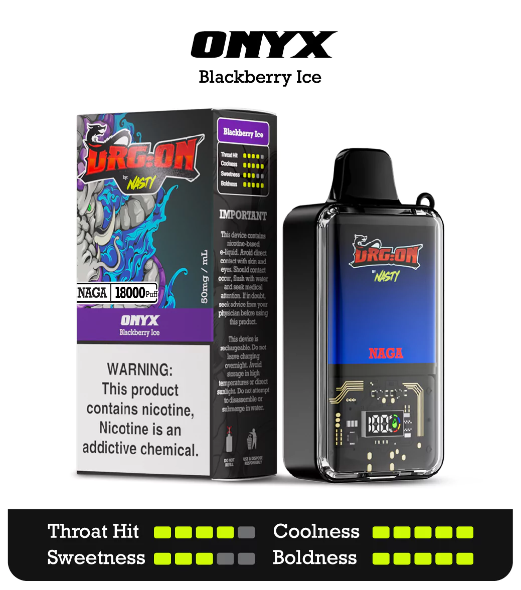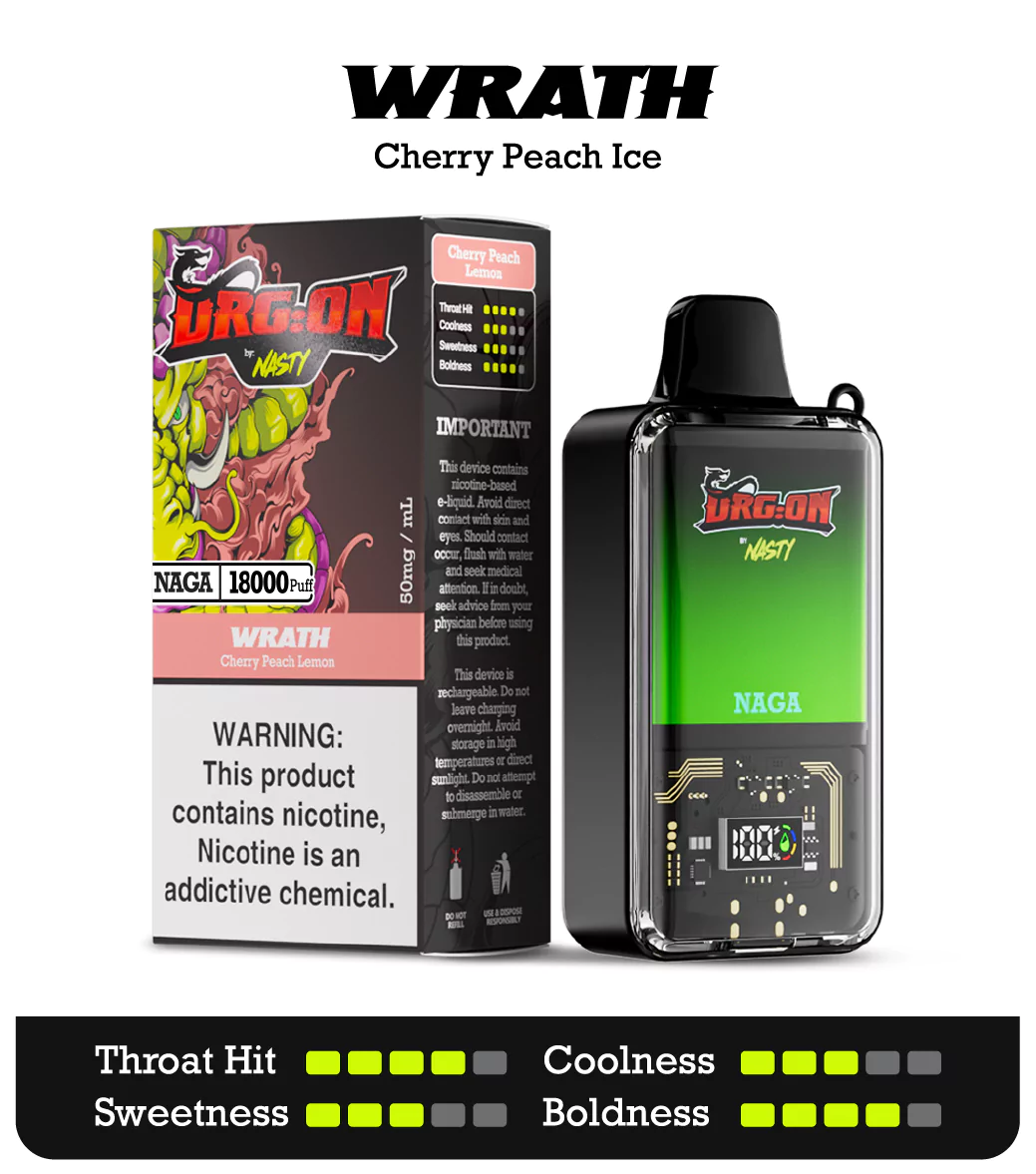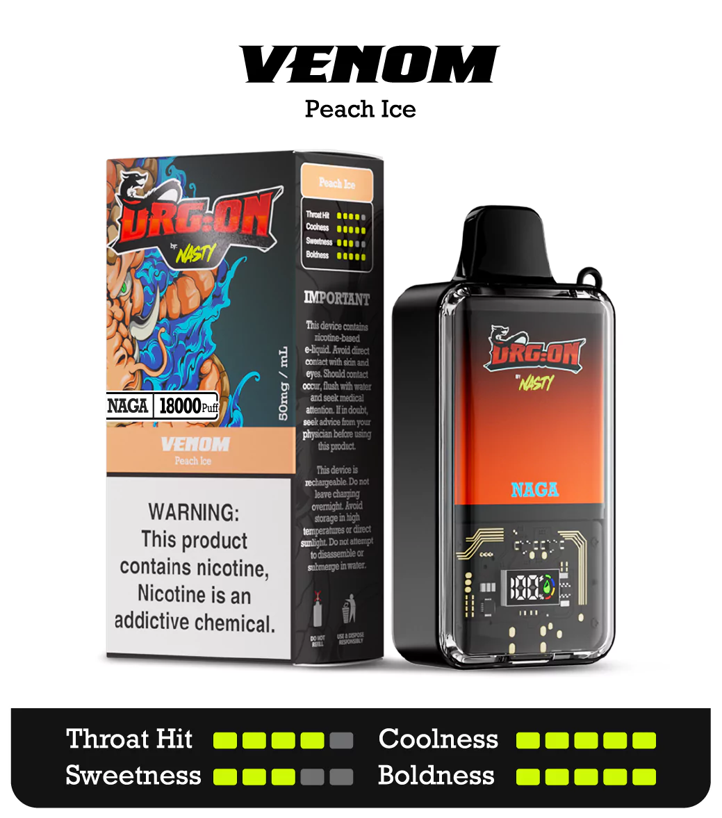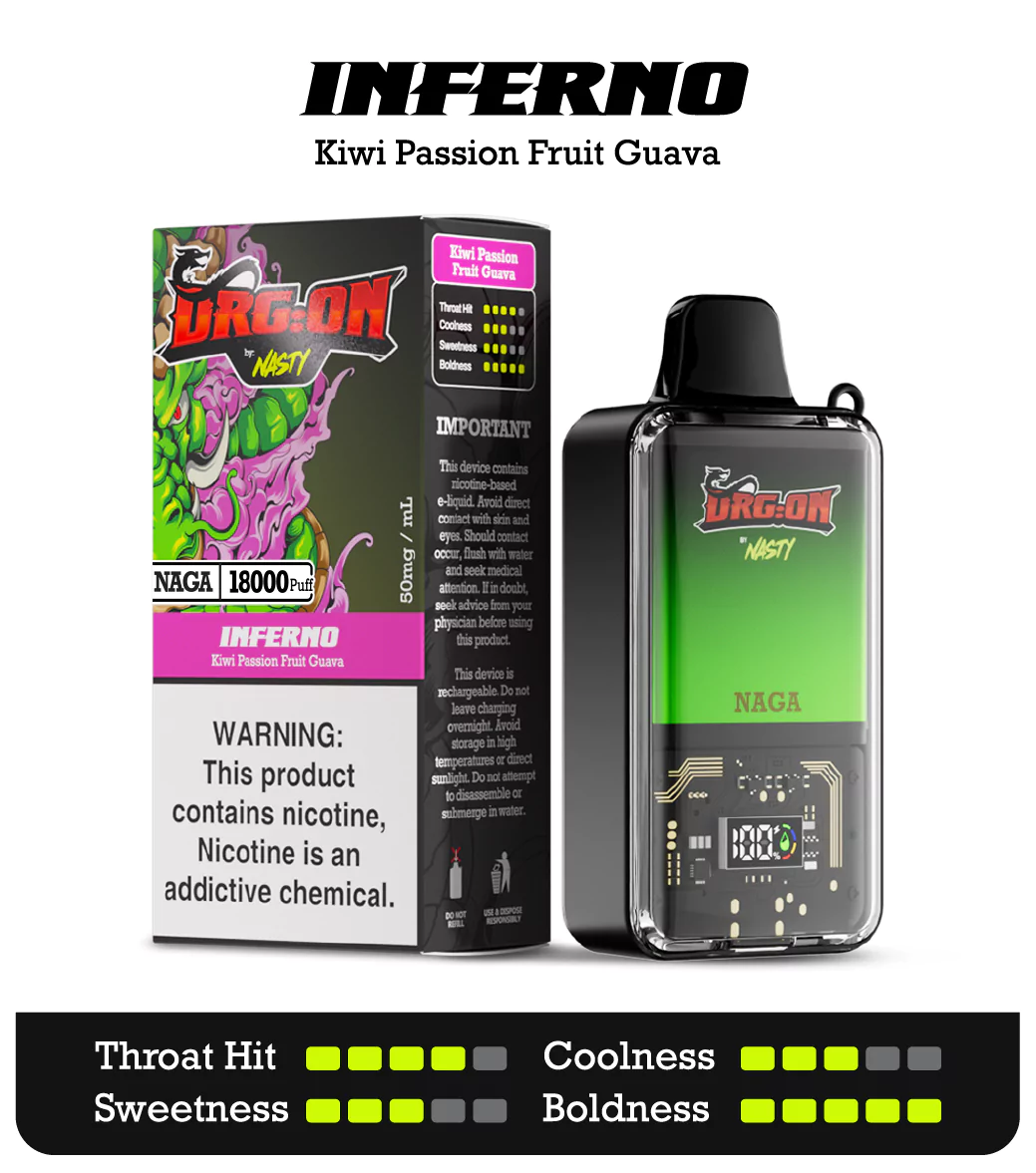 Experience the World’s Tastiest Flavours created by NASTY with the DRG:ON NAGA 18,000 puffs rechargeable disposable device.