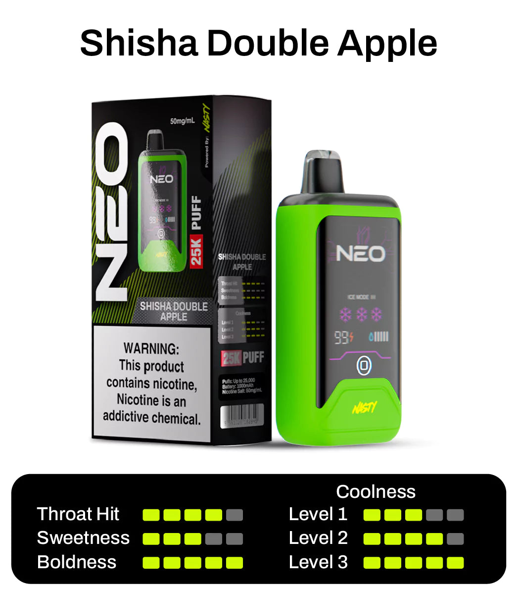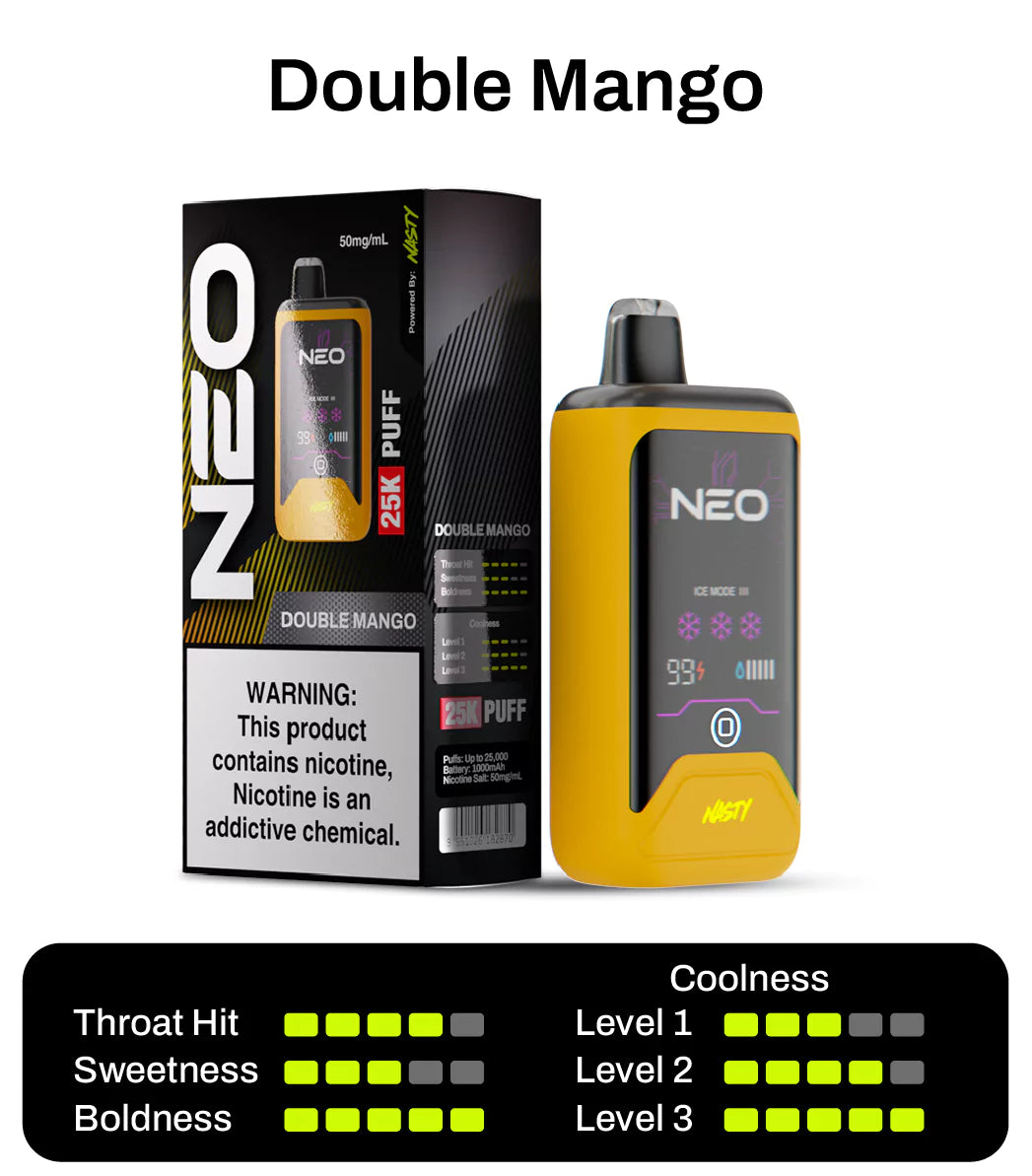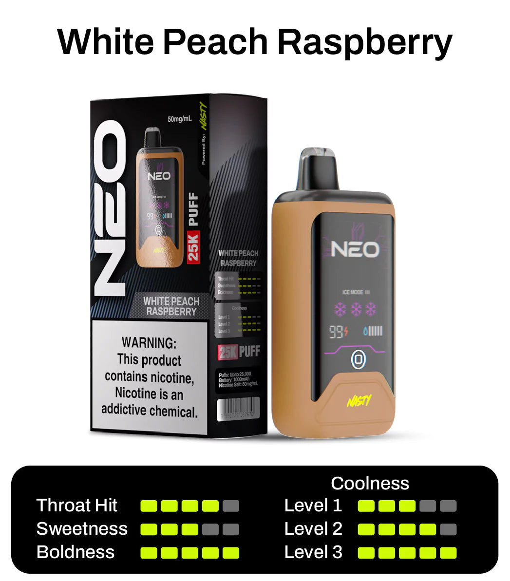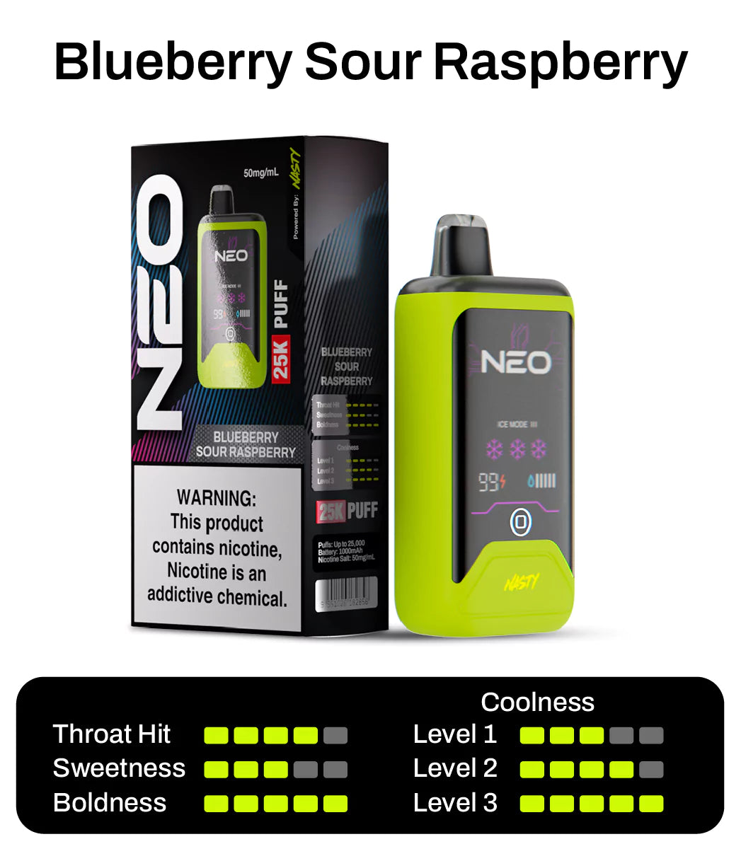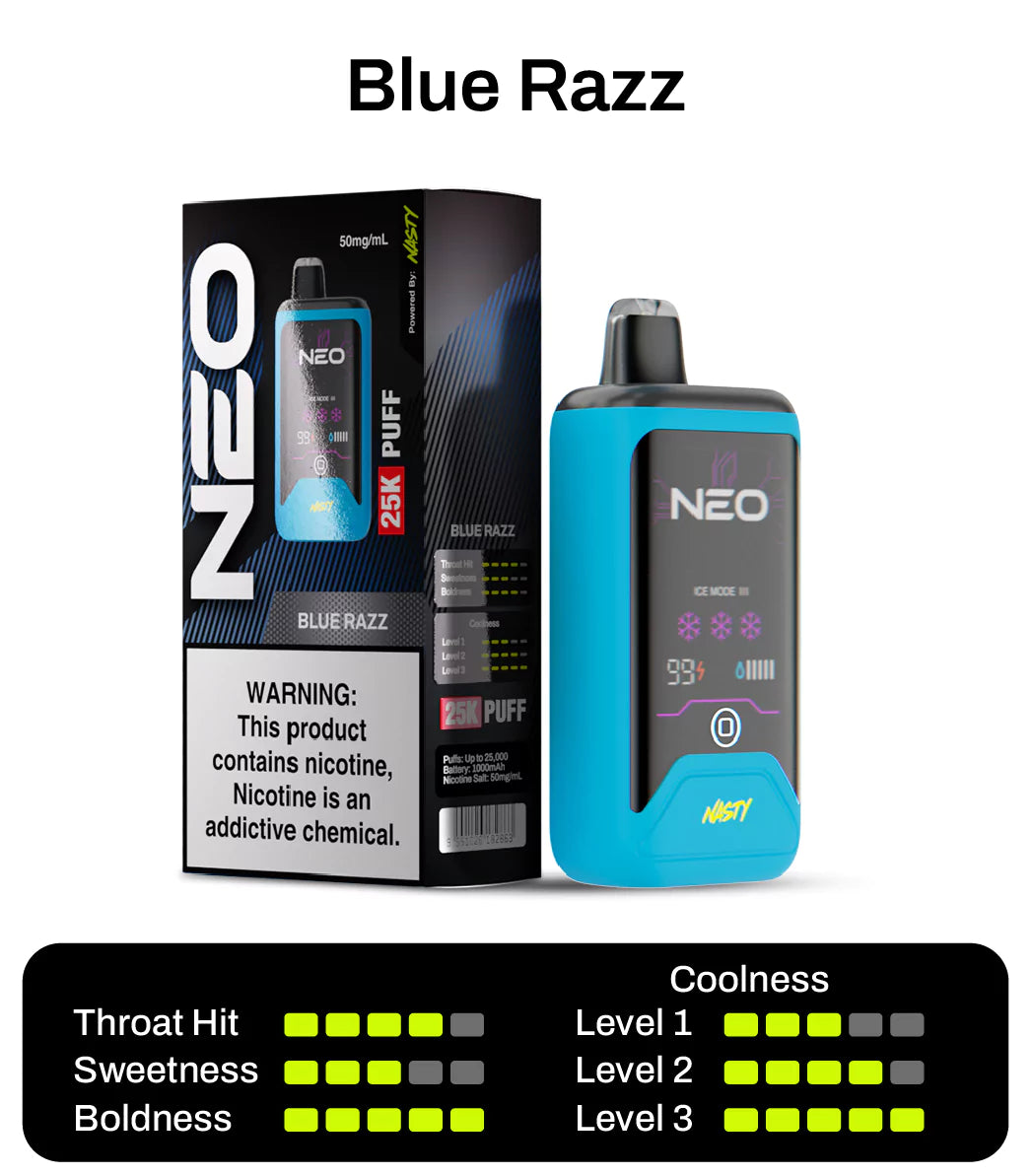 NEO 25K by NASTY is a large capacity rechargeable Nicotine Salt disposable device designed to deliver up to 25,000 puffs of pure flavour satisfaction.