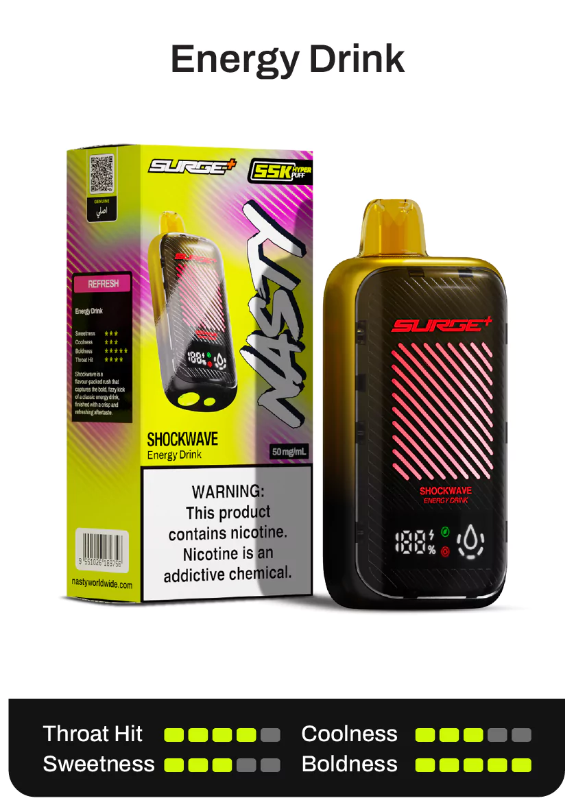 There’s no compromise with this one. Built for those who demand more. More puffs. More power. More flavour. More control. With up to 55,000 puffs, it delivers relentless performance and bold flavour that stays strong from start to finish. Powered by dual mesh coil system, every hit is smooth, consistent, and full of authority. This isn’t just performance — it’s domination.![]()