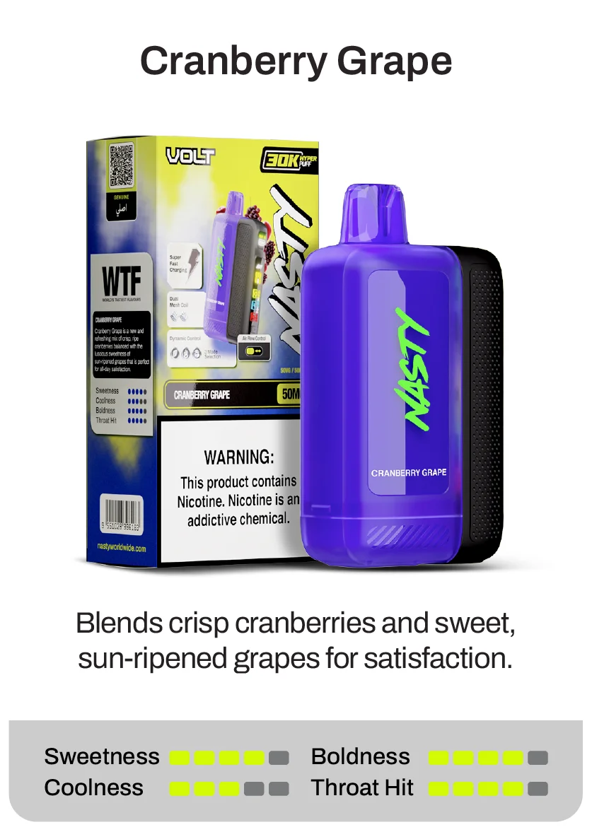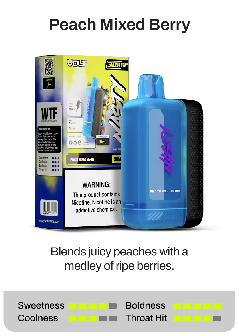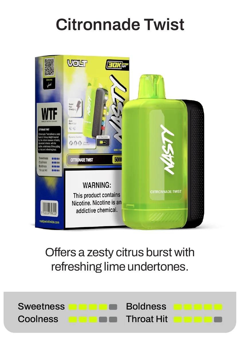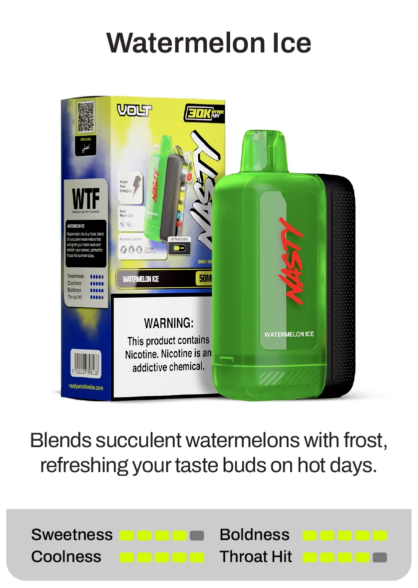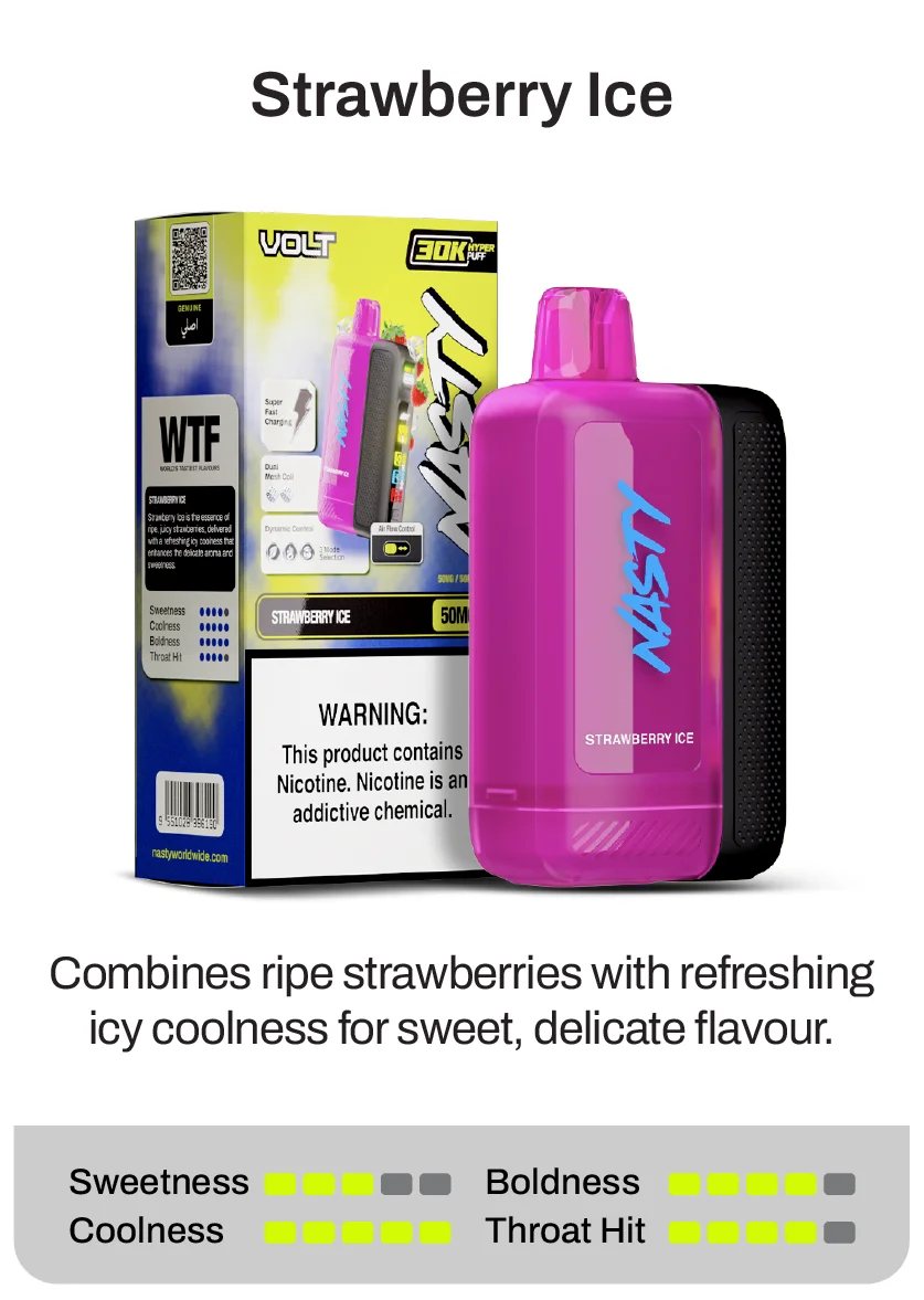 NASTY VOLT features a new dual mesh coil system with optimized power output, ensuring it delivers rich, satisfying flavour no matter the setting. Whether you’re in ECO, NORMAL, or TURBO mode the VOLT guarantees long-lasting, powerful flavor with every hit.